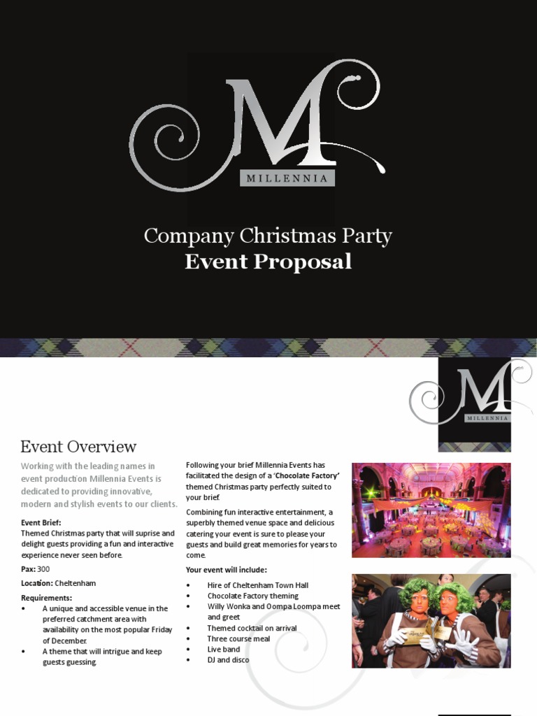 Event overview working with the leading names in event production millennia events is. If you organize events and want to offer your services, it's difficult to do so without a proper event proposal template. With the creative skills present in the designer, he can incorporate his artwork in the tickets. Make custom holiday party invitations from your home printer. After downloading this template, you can easily create one perfect christmas budget.